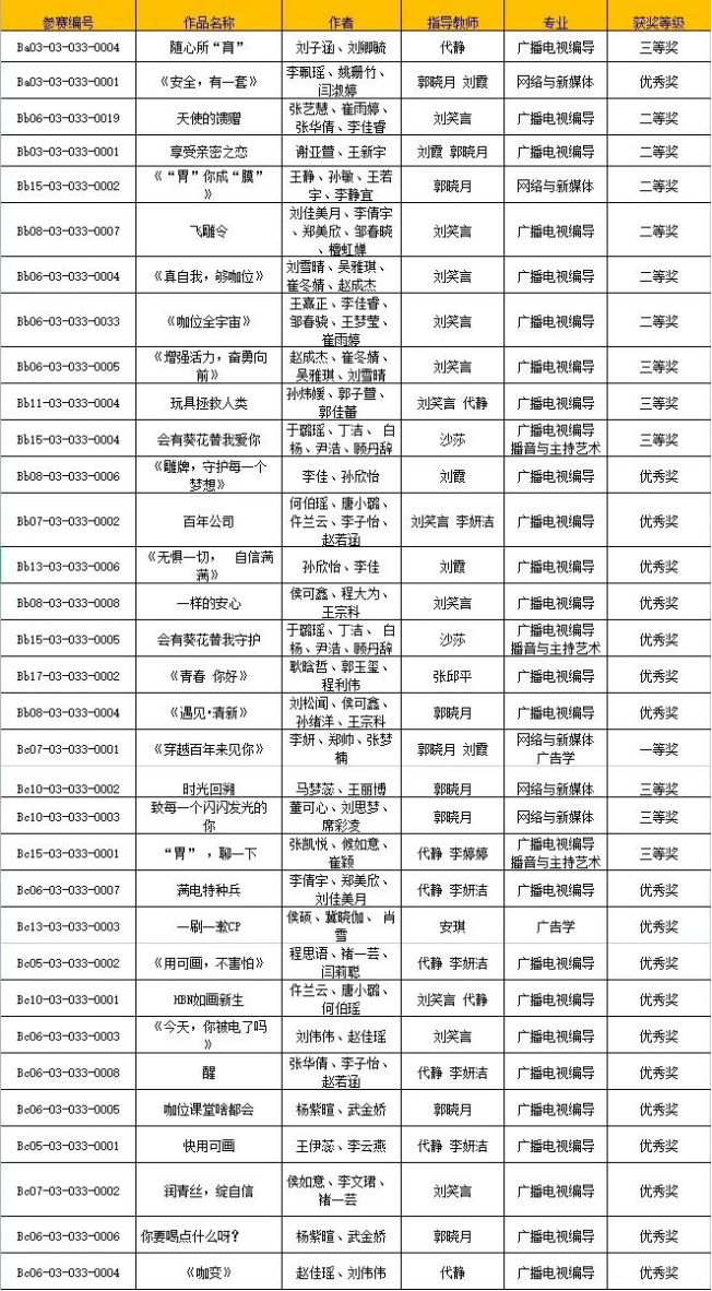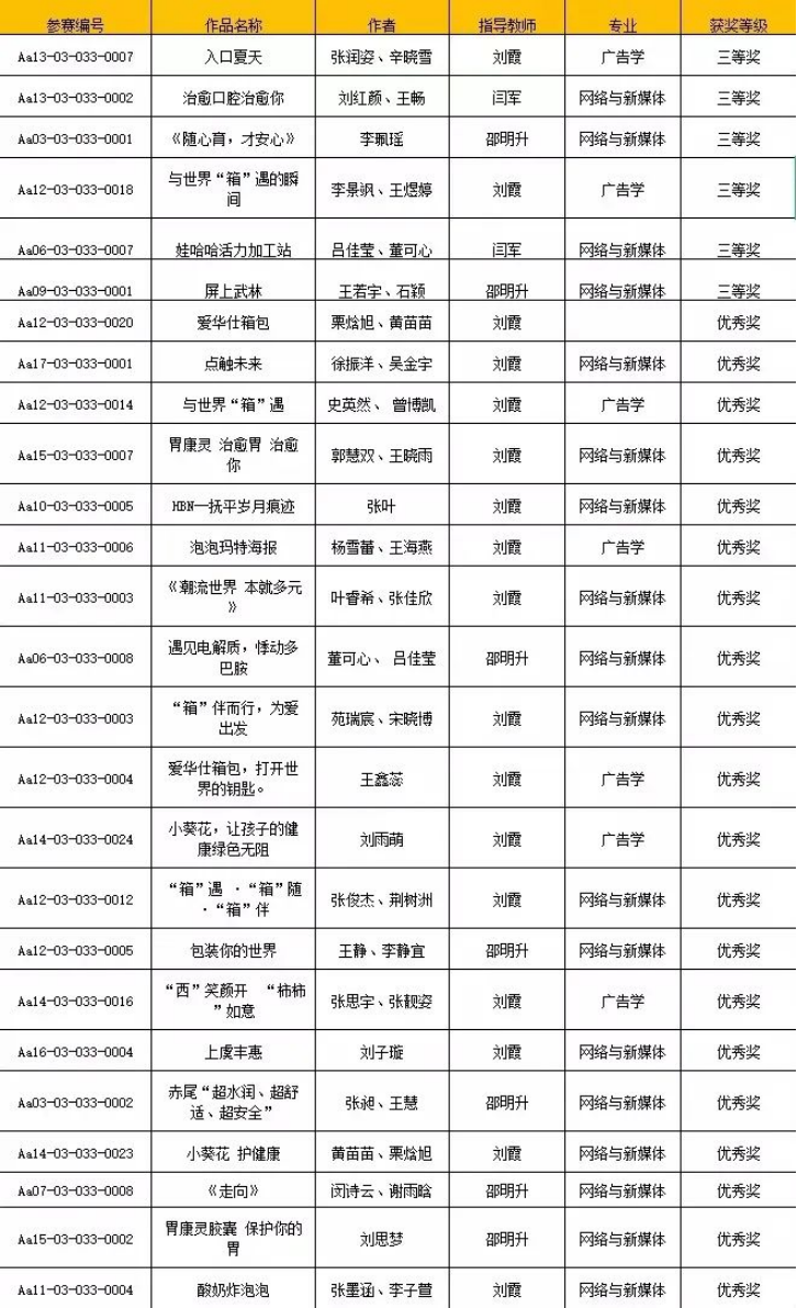 再次祝贺以上所有获奖的同学,我们期待着他们在未来能够创作出更多优秀作品,取得更加辉煌的成就!