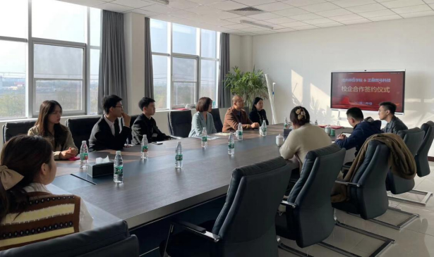 11月8日上午,齐越传媒学院师生赴沧州东经济开发区河北正赫斑马科技有限公司参观并签订产教融合协议。该院院长张海燕、教师郭晓月及“齐传添翼”大学生直播基地学生代表参加签约仪式,教务处副处长周自成出席活动。
