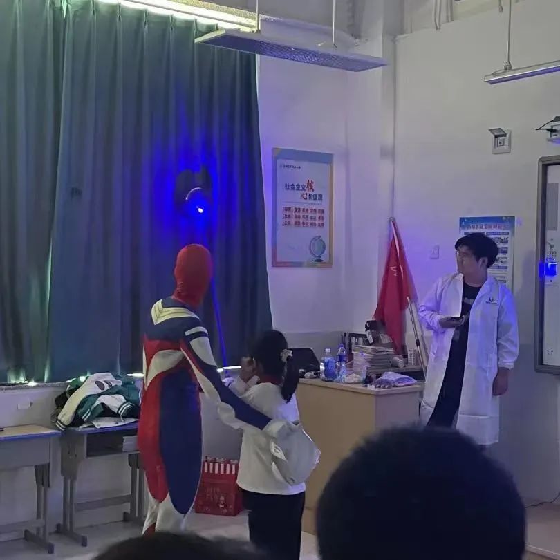 活动中,科学教育专业的师范生化身为实验老师,通过“展示+互动”的演绎方式,把科学知识“零距离”展现在小学生们面前,让小学生在体验中产生兴趣,在探索中提出疑问,在发现中了解原理,在思考中启迪智慧。此次展演时长为三个小时,分为六个实验展区,呈现了“激光秀”“火焰掌”“水世界”“马德堡半球”等近十个有趣神奇的科学实验。整个活动过程,孩子们欢笑不断,现场气氛热烈,实实在在过足了一把“科学瘾”。