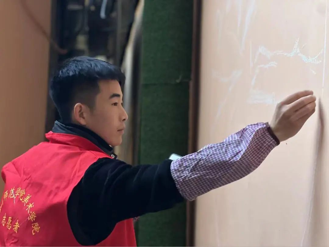 11月19日,美术学院团总支书记曾凡超带领党员、积极分子组成志愿者小队,走进沧州市中心医院医疗集团康养集团开展“关爱老人,悦绘幸福”主题党日活动。师生在康养中心画上暖心的墙绘,听老党员们传授红色故事,传承革命精神。