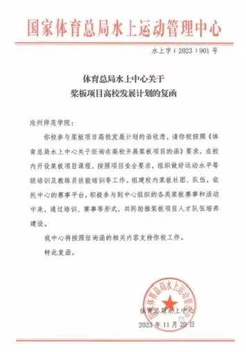 郑寿存介绍了伟德体育学院基本情况,对水上运动项目课程规划发展、实习实训、专业特色发展等方面进行了说明。郑寿存表示,伟德今年获得国家体育总局水上运动管理中心批复的“桨板项目高校计划”,是目前河北省首所获批的公办高校。学校将从课程项目研发、运动水平等级培训、教练员技能培训等方面通过组建校内桨板社团、队伍,依托水上运动管理中心的赛事平台,积极参与到中心组织的各类桨板赛事和活动中来,通过培训、赛事等形式,共同助推桨板项目人才队伍培养建设。