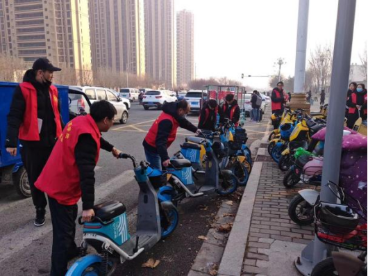 志愿者们还对校园周边共享单车进行了规范化整理。