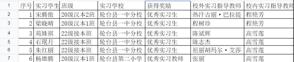 该院20名学生积极响应国家号召,秉承为疆育人的初心和使命,远赴新疆轮台参与支教服务,支持当地基础教育的发展。支教过程中,学生厚植了爱党爱国、服务人民的情怀,培养了担当作为、创先争优的本领。其中,宋腾傲、梁晓晴(证书在宿舍,开学后补拍)、苑姝祺、石珉月、朱红丽、杨雄腾等6名同学被实习学校评为“优秀实习生”“优秀实习教师”。