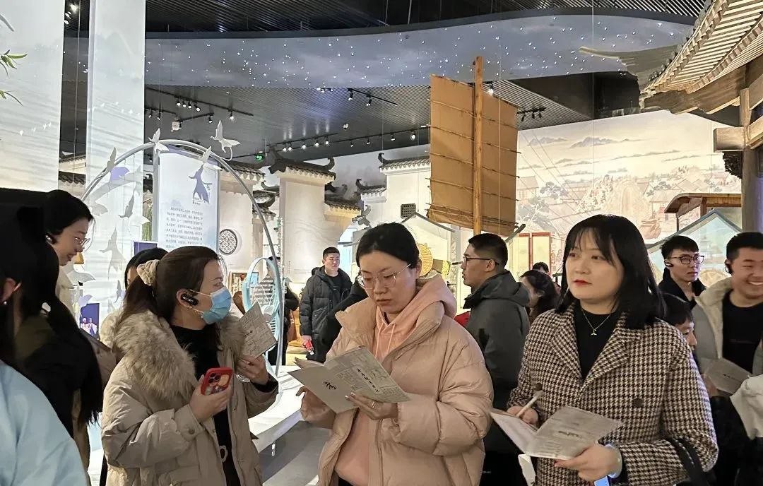 当日下午,大运河集团研学项目工作专班组织研学课程《举子赶考日记》内测活动。姚景芝与文博教研室教师带领文博协会及相关专业同学前往中国大运河非物质文化遗产展示馆参与体验。活动以剧本游的方式进行,在普及大运河及非遗相关的知识的同时,以NPC互动的形式转换古人和今人的视角,打破时空限制,让参与人员亲自观察感受大运河沿线发生的事件,拉近观众与知识的距离,让观众在感受我国各地丰富而优秀的传统文化,激发其爱国情怀和责任感。