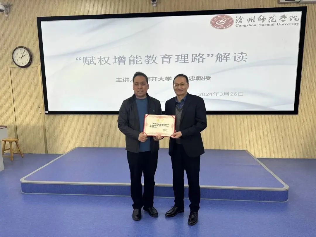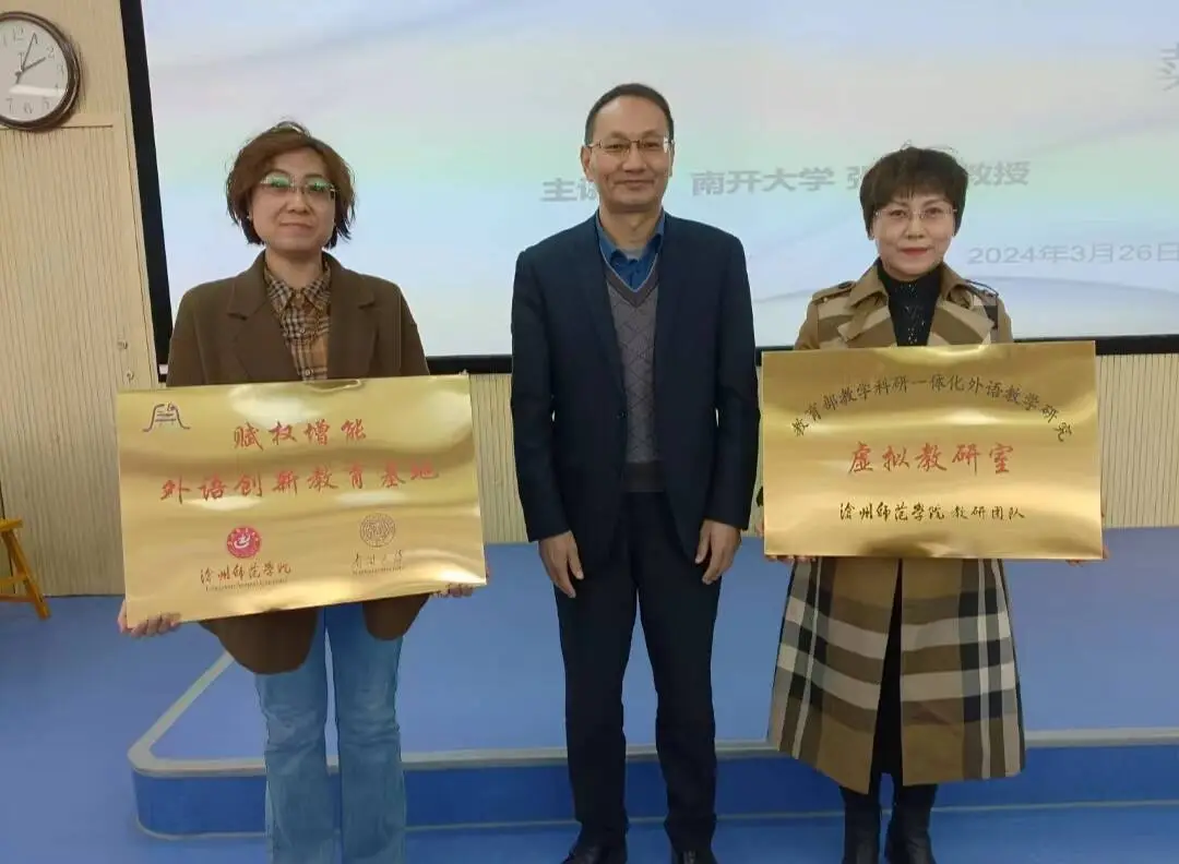 3月26日下午,教育部教学科研一体化外语教学研究虚拟教研室负责人、南开大学外国语学院张文忠教授受邀为外国语学院师生作“赋权增能教育理路”解读专题讲座,并为学院“赋权增能外语创新教育基地”和“教育部教学科研一体化外语教学研究虚拟教研室”授牌。党委常委、副校长范小振代表学校为张文忠教授颁发了伟德源自英国始于1946客座教授聘书。外国语学院院长王娜、党总支书记陈蕊、副书记刘文慧及全体教师和学生代表参加,副院长徐广林主持。