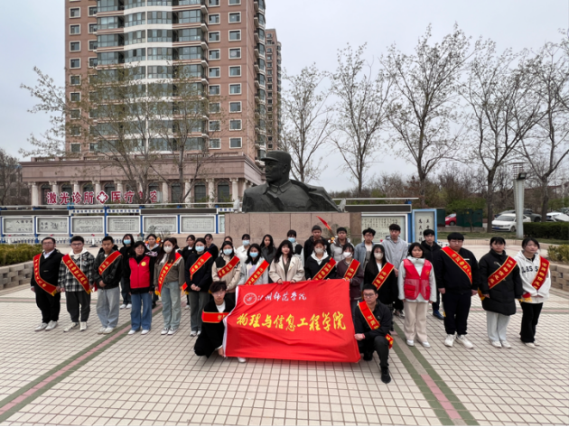为弘扬英烈精神,传承红色基因,4月2日清明节前夕,物理与信息工程学院师生到马本斋纪念广场开展祭扫活动,缅怀抗日英雄马本斋同志。
