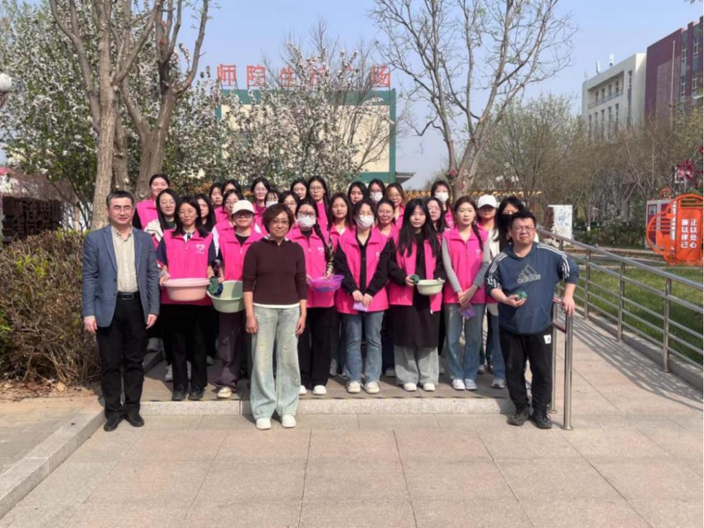 4月11日下午,外国语学院党总支书记陈蕊、副书记刘文慧以及辅导员武云鹏带领在校学生党员、入党积极分子到教室、廉心园开展校园清洁活动。