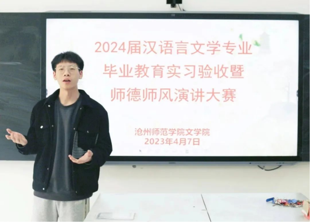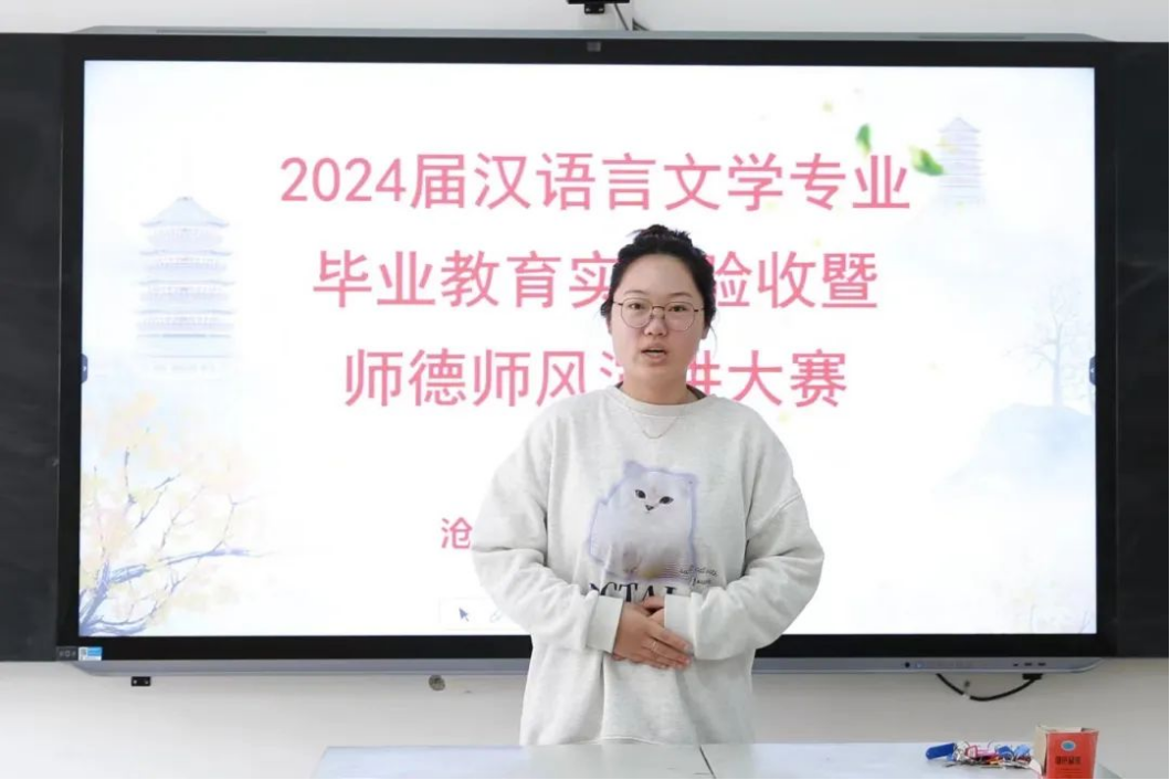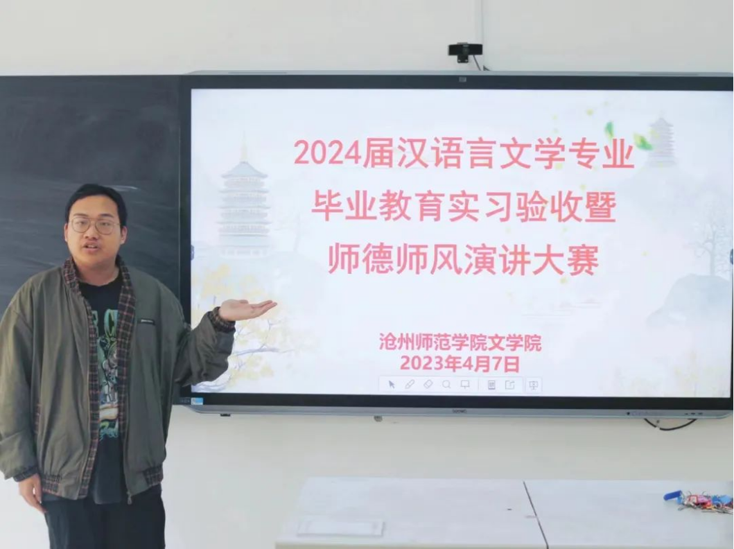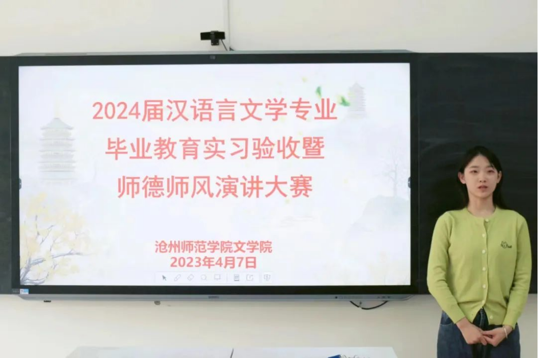 为进一步巩固教育实习和教育研习成果,把好毕业生“出口关”,近日,文学院于齐越楼204教室举办2024届汉语言文学专业毕业教育实习验收暨师德师风演讲大赛。文学院院长王金萍、党总支书记王竹承、副院长程艳芳参加活动,教师王晶主持。