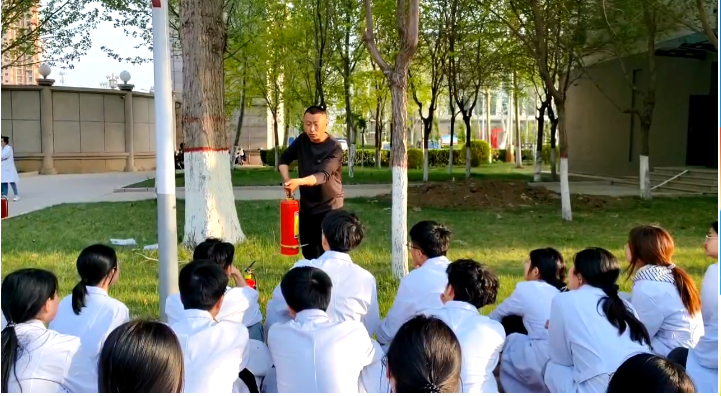安全处副处长张金峰详细地讲解了灭火器的正确使用方法,学院教师进行实操演示,学生们轮流迅速地完成了“一提、二拉、三握、四压”这一连贯的灭火动作。