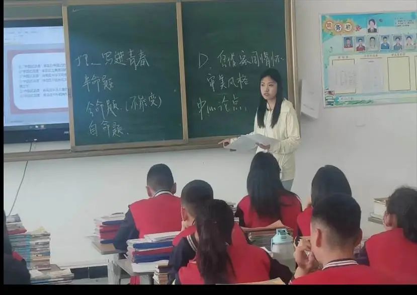在课堂上我也遇到了许多难题,比如最基本的,班里半数的孩子没有书,无论课堂上还是早读,晚自习留作业时,都需要我把文言文或者需要读和背的内容做成ppt放到班班通(黑板上的电脑)上,班班通还经常没电配合板书,尽可能地让学生“完整地”听课。我们班的黑板有四面,每节课我都要把四面黑板擦至少两次,板书能力的确得到了很大的提升。我也学习了其他班的一些方法,比如让学生前一天抄写原文到作业本上,逐渐,没有书再也不是上课的障碍了。
