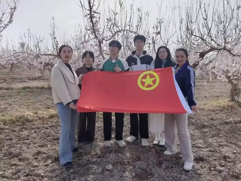 农业蔬菜大棚转完之后,我们一行人又来到了果树资源圃,赶上了杏花开放,孩子们非常开心地在杏树周围奔跑,有几位学生跑过来满怀期待的问我,可不可以给我们拍几张照片?我说,当然可以啦。然后,我跟随这几位学生走到了几棵杏树下面,刹那间,我感受出了新疆孩子们的淳朴。