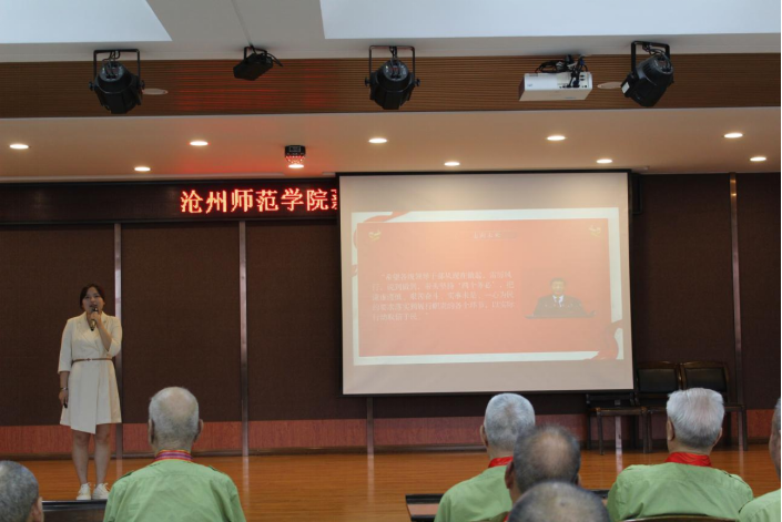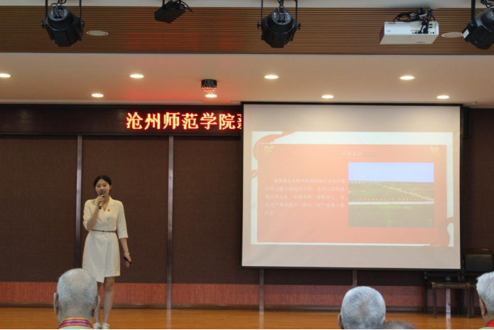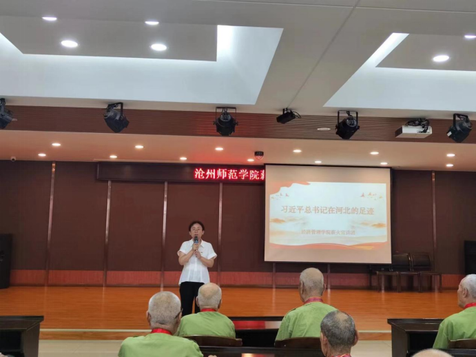 薪火宣讲团成员乔竞仪、王欣、张思雨、梁竞文、曹仪冉和孙溶婧以“习近平总书记在河北的足迹”为主题向老荣军展开宣讲。