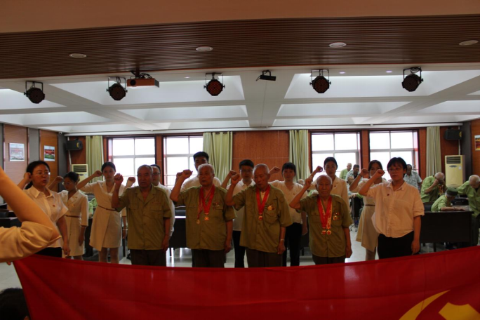 在“七·一”这个具有特殊意义的日子里,师生与老荣军共聚一堂,怀着无比崇敬的心情共同重温庄严神圣的入党誓词。“老荣军的坚韧与毅力、对党的热爱与忠诚让我钦佩,昂扬向上的精神使我动容。我将以老兵为楷模,铭记历史,发扬红色精神,为实现中华民族伟大复兴的中国梦贡献自己的力量!”乔竞仪同学说。