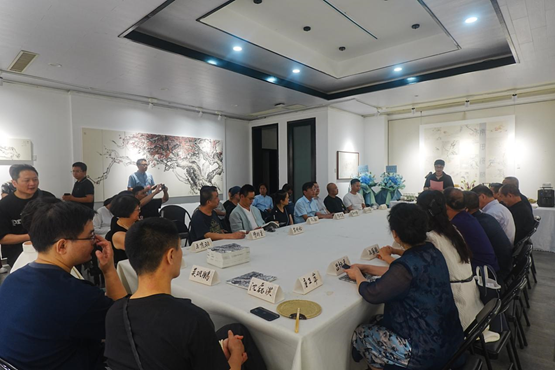 现场展出刘国胜的花鸟画作品92幅,其中最显著的一个特点便是“梅花”,既有巨幅创作,也有温文尔雅的小品,观众在夏末进行观展,定能感受到其中的清凉与温婉。有嘉宾感慨道,刘国胜的作品集艺术性、观赏性和现实性于一体,他用艺术语言表达对生活和时代的理解,令人难忘。范小振表示,他眼中的刘国胜是一个诚实又扎实的人,不管是为人、作画还是行事,都有着这样的特点。