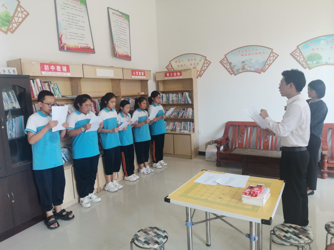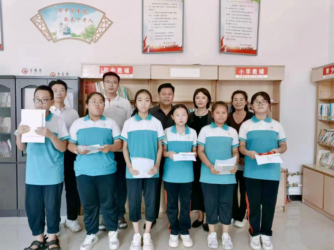 活动伊始,安琪代表学院为小学生们送上了笔记本、铅笔等学习用品,勉励同学们努力学习,早日成为国家的栋梁之材。随后,她为孩子们分发本次活动的朗诵稿件,并鼓励同学们,不仅要学好普通话,也要以红旗广播站为平台,传播党的声音,传达党的方针和政策,让党的声音深入每一位村民朋友的心中。