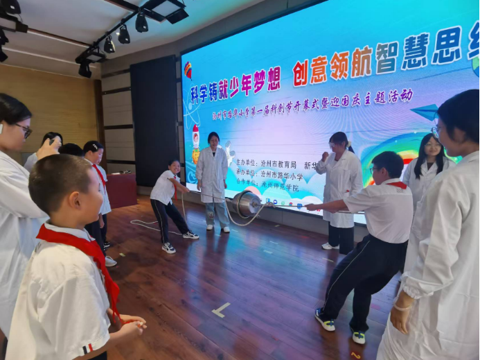 为增进孩子们对科学技术的认知,提升孩子们探索科技的兴趣,增强孩子们学习科学的积极性,9月19日下午,物理与信息工程学院参加沧州市路华小学第一届科创节开幕式暨迎国庆主题活动,胡晴晴老师、王昱升老师及屠晨晨老师带队,2022级科学教育专业全体学生参加。