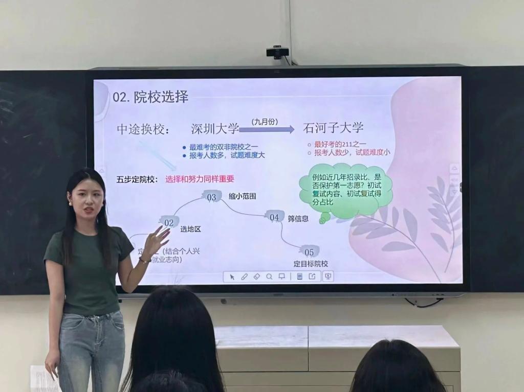 研究生考试助力活动由辅导员郑佳、丁咚主持,邀请考研至石河子大学、湖南师范大学、甘肃政法大学等高校的2024届毕业生林璐璐、曾莹、郭星言、刘事成、马婉清,讲述自己的考研经历和经验,帮助备考学生了解考研信息,讲解刷题技巧,调整备考心态,增强备考信心。活动现场,五位同学分享了自己精心整理的真题集锦和备考资料,并被学院聘请为“文学院研考助力官”。