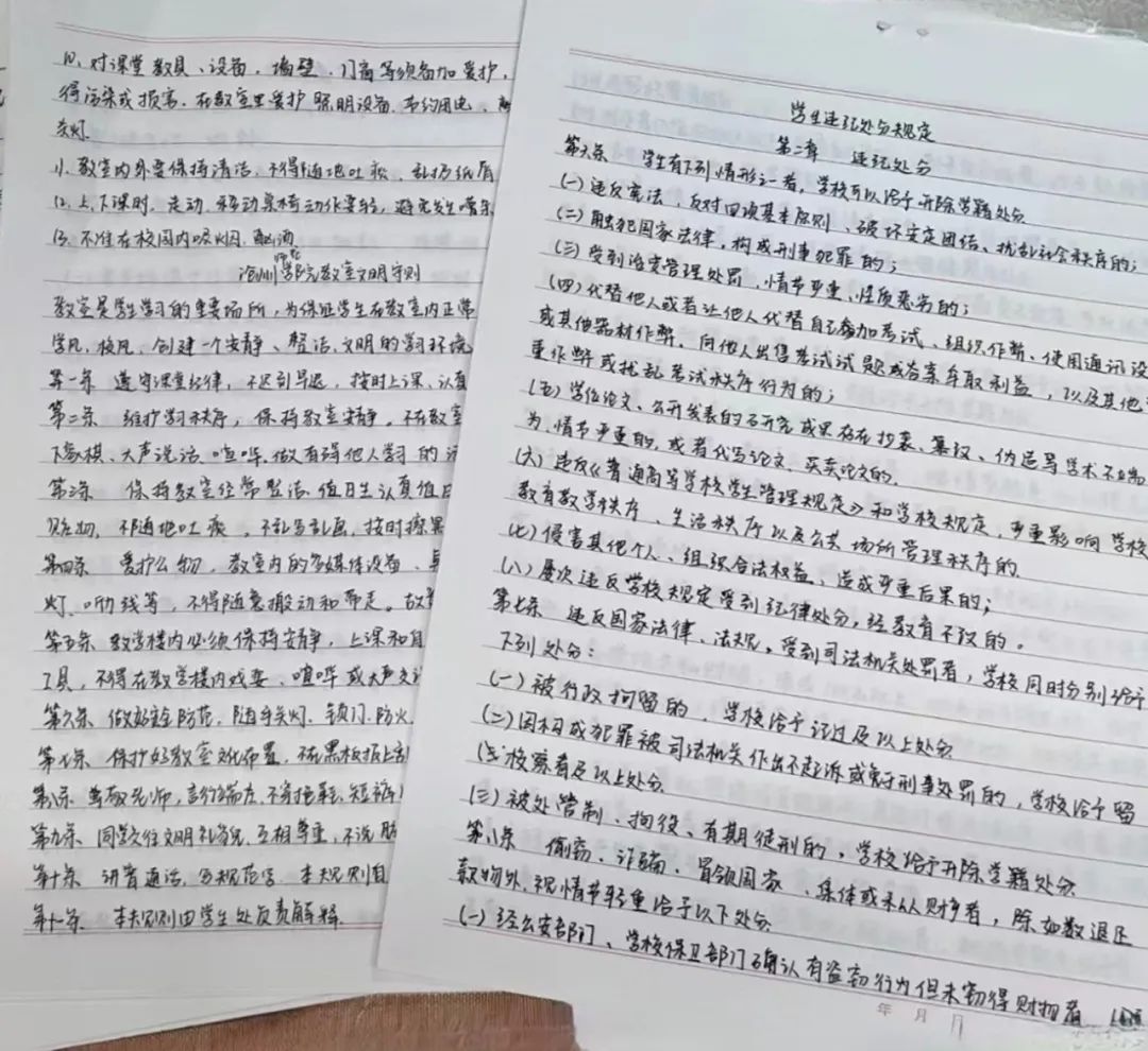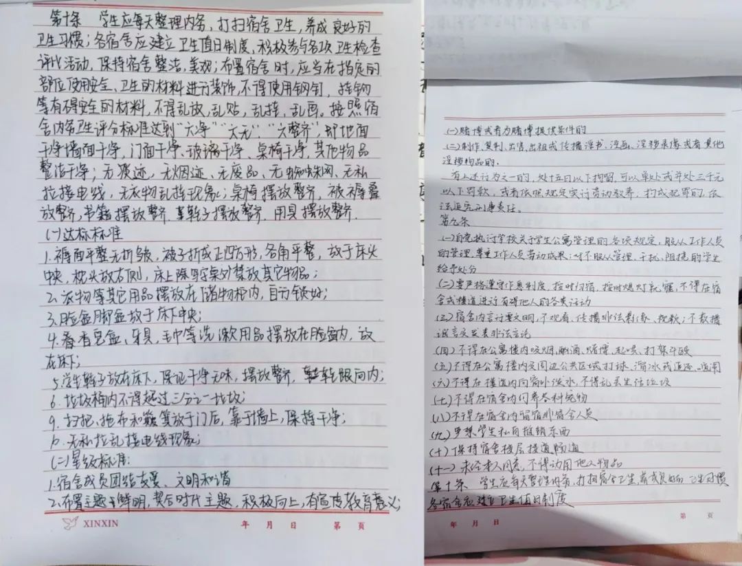 各班组织学生通读《学生手册》主要内容并做好学习笔记,以此加深对相关条文的熟悉和理解,进一步提升学生自我约束、自我管理的意识。