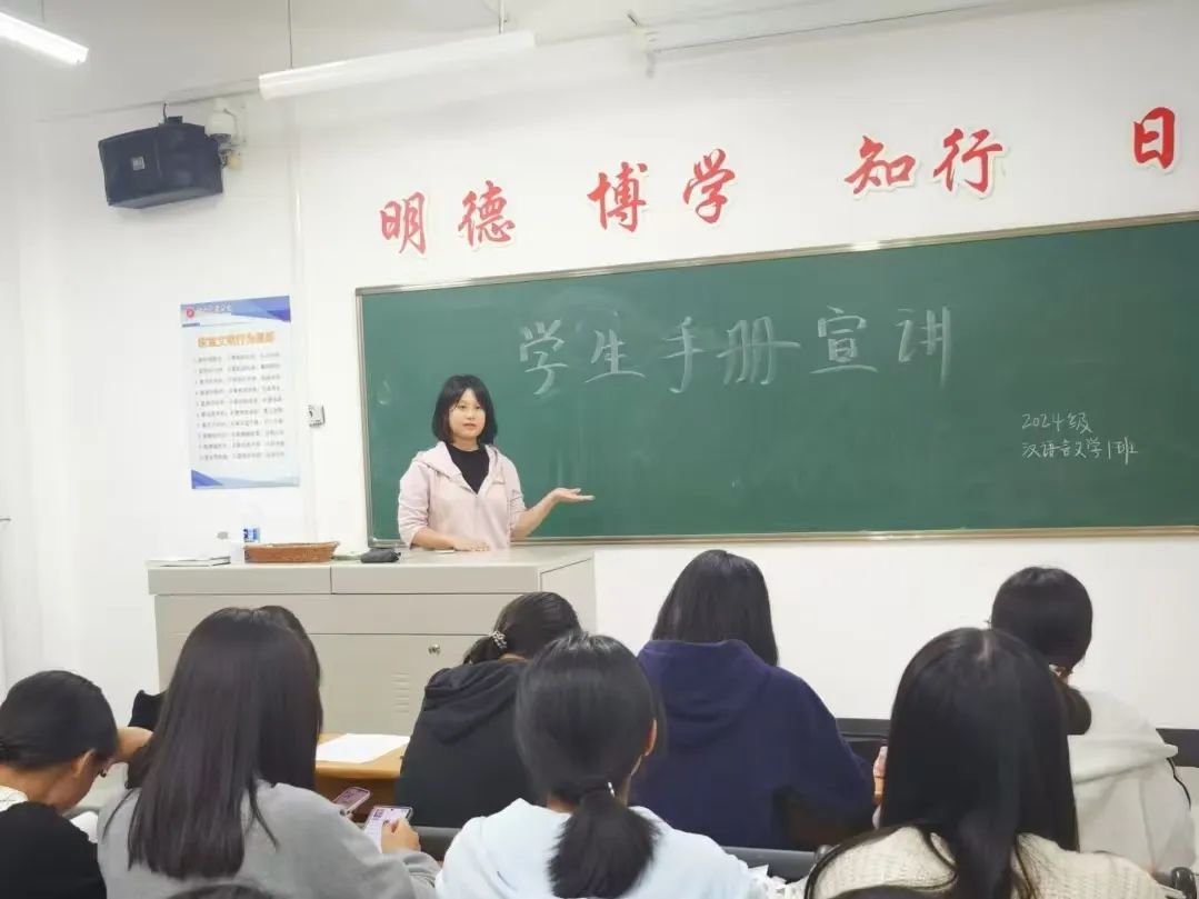 为教育引导学生明确校规校纪,规范言行举止,强化纪律意识、规则意识和底线意识,近期,文学院组织2024级全体新生开展《学生手册》专题学习活动。
