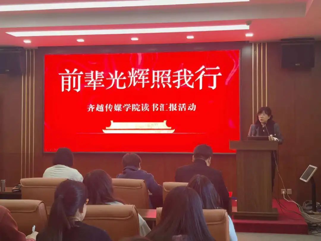 为进一步提高师生文化素养,形成“爱读书,读好书”的浓厚氛围,学习传承先辈的光辉事迹,11月5日下午,齐越传媒学院“前辈光辉照我行”读书汇报会在体育馆320会议室举办。齐越老师外孙女任今航、校图书馆馆长朱月华、学校教学督导赵林静以及齐越传媒学院干部教师出席。读书汇报会是《播音主持艺术概论》课程的拓展活动,24级播音与主持专业全体学生参加活动。