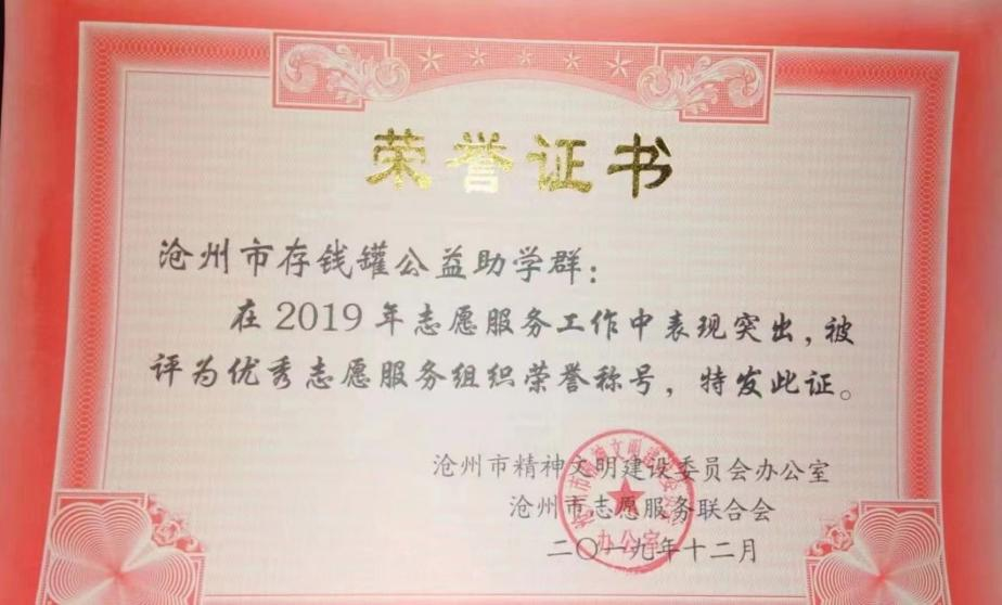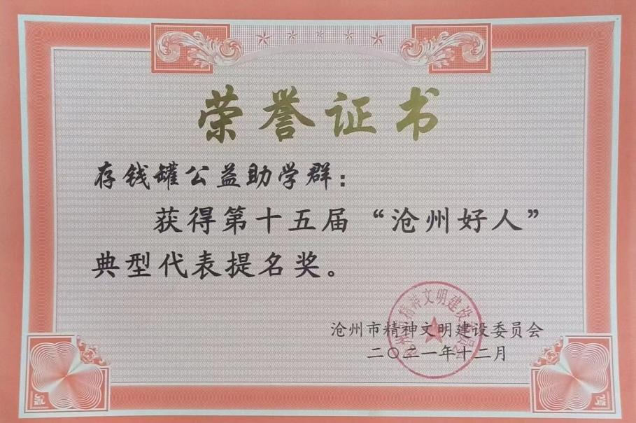 父亲在奶奶的感染下,也带着“为人民服务”的心,在日常生活中投入救援和助学等志愿活动中。2015年6月父亲组织创建了沧州市存钱罐公益助学群,是由民间爱心网友组成,爱心成员达到150人,依靠爱心成员的点点滴滴爱心汇聚,已经资助了30名准大学生进入了理想的大学校园,资助金额达到了12万余元。有些受过资助的学生已经考上了研究生,在人生的旅途越走越宽阔,每每听到学生的来信,父亲的心中总是暖融融的,奉献为他带来了最大的快乐!公益事业也受到了报纸的报道,收获了一些荣誉,如“河北省先进志愿服务组织”,“河北省志愿服务创新项目”“沧州好人提名奖”等,父亲说:“感谢党和政府对我们的认可,我只是一名普通的群众,我为人人,人人为我,这样我们的社会才能有更多的奉献与和谐!”