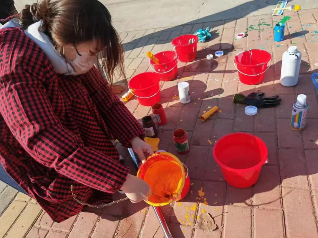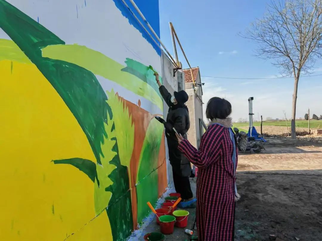 抵达大堤东村后,志愿者们迅速投入到紧张的墙绘工作中。他们分工明确,有的负责勾勒线条,有的负责调色上色,还有的负责现场协调。在曾凡超老师的带领下,志愿者们充分发挥自己的专业特长,将一幅幅生动美丽的墙绘作品呈现在村民们的眼前。