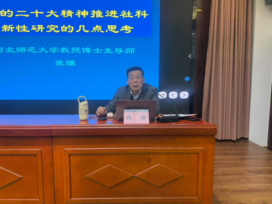 张骥以《以党的二十大精神推进社科创新性研究的几点思考》为主题开展讲座。张骥详细讲解了申报国家和省社科基金的选题、论证、科研成果的积累以及团队等方面需要注意的问题,并通过自身经验对申报书各项内容进行指导。