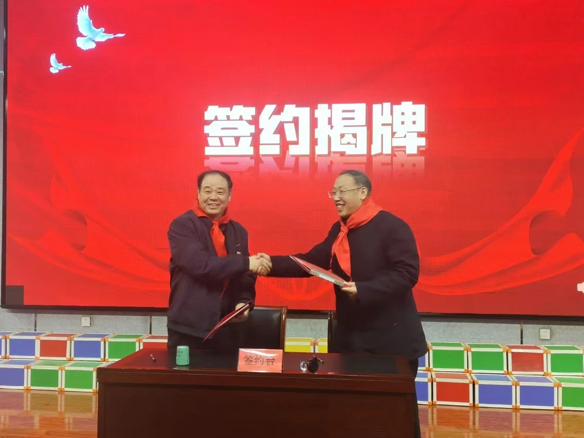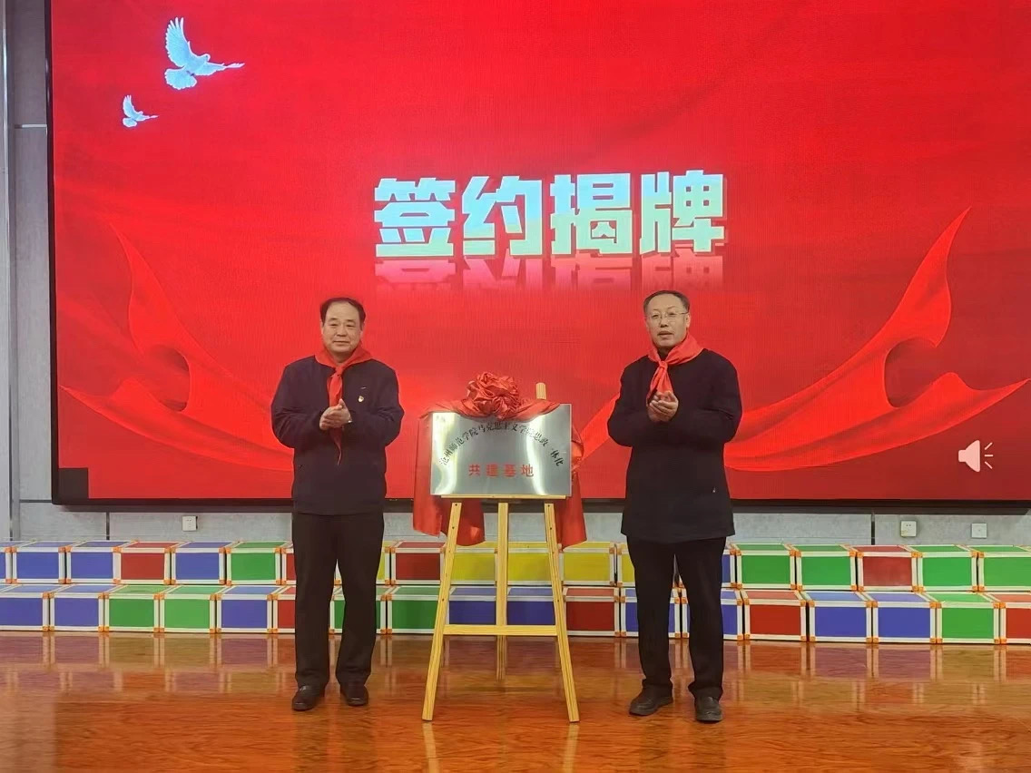 李树旗和吴忠权分别代表双方签订《大中小学思政一体化共建协议书》并揭牌,共同为马克思主义学院教师郭晓春、陈倩颁发聘书。
