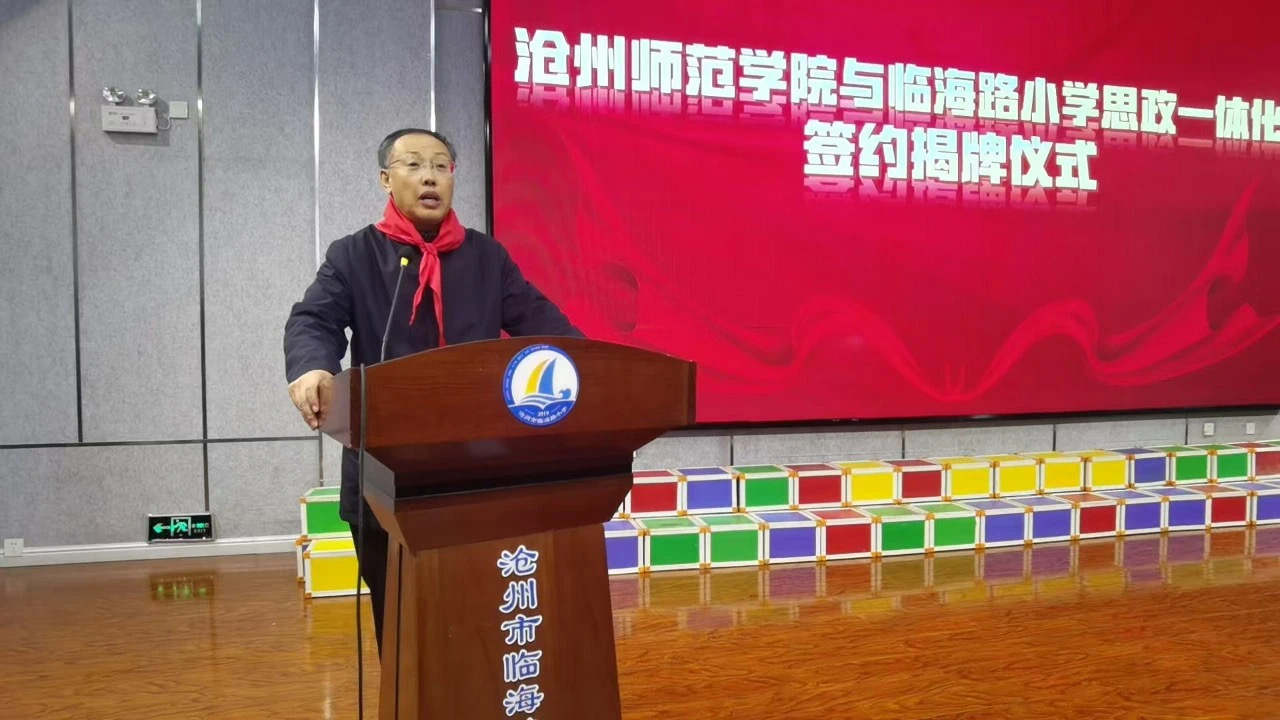 为深入贯彻习近平总书记对学校思政课建设的重要指示精神,落实立德树人根本任务,深入推进大中小学思想政治教育一体化建设,推动大中小学思想政治教育紧密衔接、相互配合,12月13日,马克思主义学院与运河区临海路小学合作共建授牌签约仪式在临海路小学举行。运河区教文体局副局长吴素臻,运河区青少年活动中心主任王承丽,伟德马克思主义学院院长李树旗、副院长刘云鹤、思政课教师代表,临海路小学党支部书记、校长吴忠权及师生代表参加。