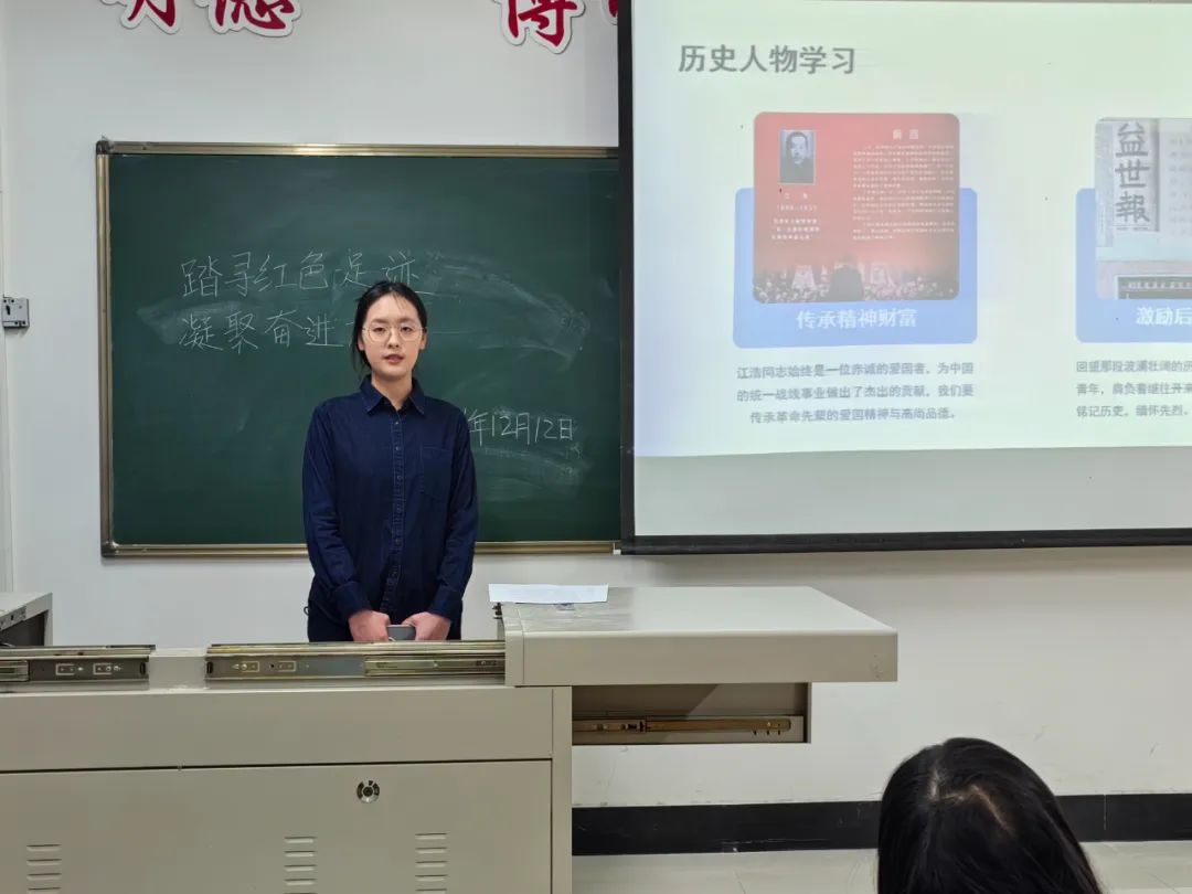 12月12日一13日,马克思主义学习小组成员走进各班团支部,围绕爱国主义教育基地寻访经历,开展国家公祭日主题团课。学员们以牢记抗日战争历史,弘扬伟大抗战精神为主题展开宣讲,激励同学们克服一切艰难险阻、为实现中华民族伟大复兴而不懈奋斗。