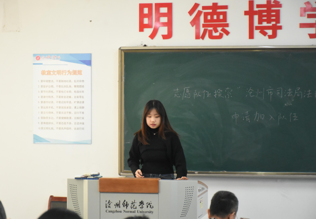 讲座接近尾声时,全体参会同学满怀热忱地主动加入了沧州市法律援助志愿者队伍,彰显了同学们立志为公益事业奉献力量的坚定决心。