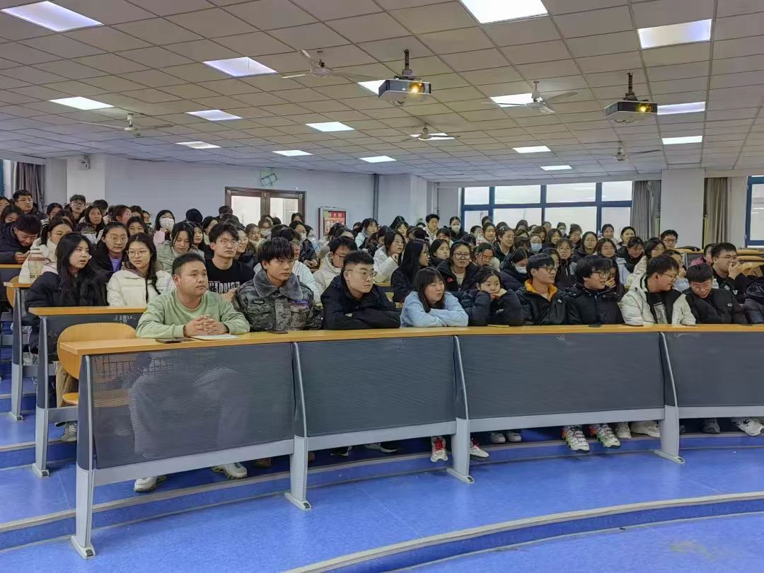 2025年考研在即,为缓解学子备考压力,鼓舞士气,坚定其冲刺信心,化学与化工学院于12月19日下午在鲲鹏教学楼第三阶梯教室举办了考前送温暖祝福会。学院党总支书记王书贵、党总支副书记潘春晖为学子们送上祝福。2021级辅导员盛颖主持活动。