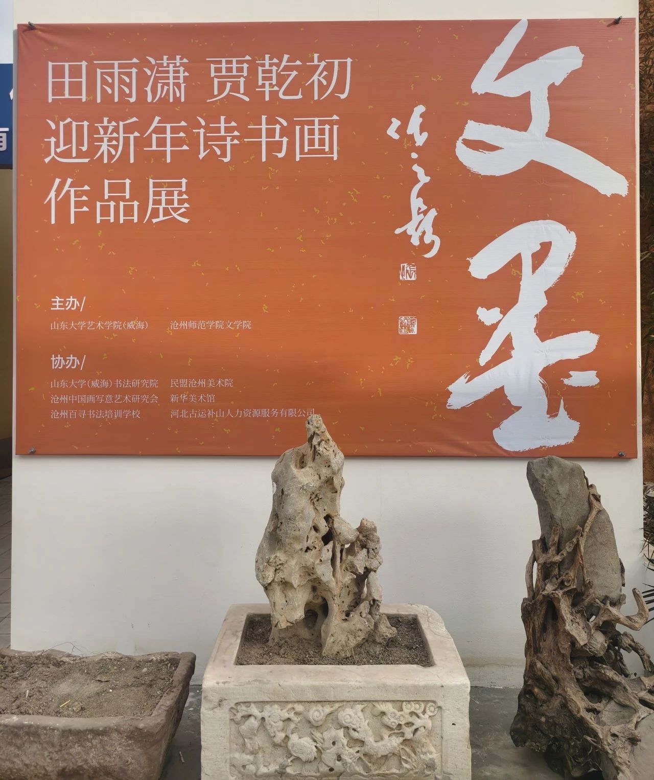 12月21日,由伟德文学院同山东大学艺术学院(威海)共同主办的“文墨”——田雨潇贾乾初迎新年诗书画展在狮城书画苑美术馆开幕。伟德党委书记云电军、校长张占平、党委副书记范小振,山东大学(威海)书法研究院副院长兼秘书长贾宏福,沧州市政协原副主席葛义栋、沧州市文联原主席魏新民、沧州市社科联副主席王秀云,沧州市税务局副局长郭彤彬、沧州市文联副主席刘植毅,沧州市工商联副主席、市建平律师事务所主任王文来出席活动。