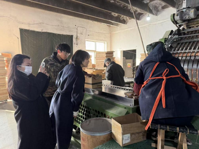 团队成员首先到泊头明光火柴厂参观调研,河北省级非物质文化遗产泊头火柴制作技艺传承人、明光火柴厂总经理田向农带领师生们参观了解火柴生产的技艺及流程,师生们亲眼实地了解火柴生产的全流程,从精选木梗、制作火柴、包装,直至制盒、装盒,每一道工序都凝聚了工匠们的辛勤劳动和智慧成果。令人感慨的是厂院内堆放着原泊头火柴厂的生产机械,民族火柴工业的发展缩影依稀在目。