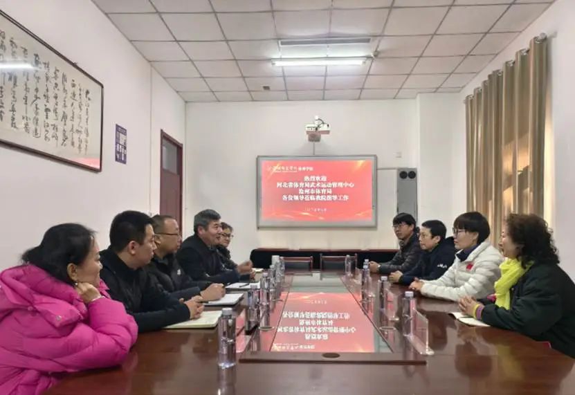 3月2日,河北省体育局武术运动中心主任张立红、沧州市体育局副局长董军一行五人莅临伟德体育学院就武术与民族传统体育专业建设、专业人才培养及产学研合作等内容开展调研指导。体育学院班子成员、武术与民族传统体育教研室教师参加调研座谈。