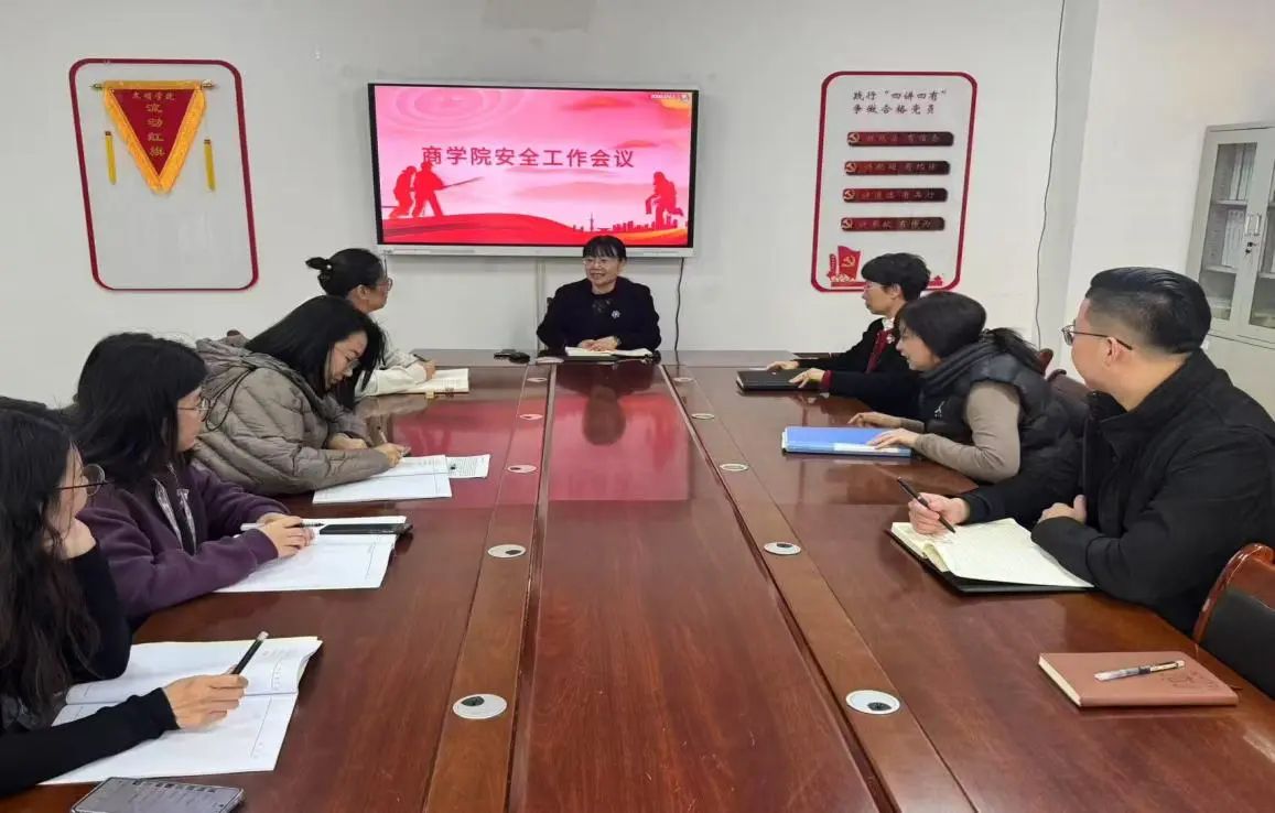 为提高学生的安全意识,营造一个安全、健康的学习和生活环境,近日,商学院组织召开了安全工作会议。会上,院长张兰新强调了安全工作的重要性,指出安全是学院发展的基石,关乎每一位师生的切身利益,任何时候都不能有丝毫的懈怠,要求各年级辅导员召开“开学第一课”安全教育主题班会,对学生进行全方位的安全教育,做好学生安全教育工作。