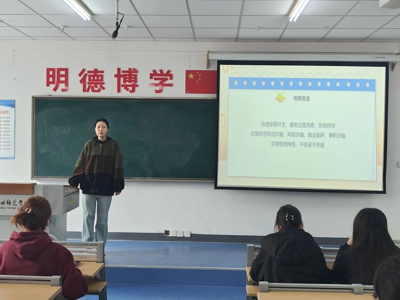 开学第一课不仅是知识的启蒙,更是心灵的启迪和成长的起点,为引导学生增强安全意识,为新学期新生活的开展打牢安全保障,政史学院面向全体学生开展了“开学第一课”安全教育主题班会,此次班会由四个年级的辅导员唐逸凡、王希礼、张志伟、刘晴分别主讲。