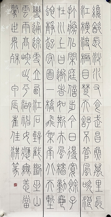 学习篆书篆刻,不仅是技艺的提升,更是心性的磨砺。在这个快节奏的时代,我们应放慢脚步,静下心来,专注于每一个笔画、每一刀刻痕。它教会我们耐心与坚持,明白艺术创作如同一场漫长的修行,需要日积月累的沉淀与努力。包俊宜曾说:“篆书是传统书法的基础,也是一条连接书法艺术从过去通往未来的路。”这指明了篆书在书法体系中的基础地位与传承意义。我们在学习过程中,应夯实基础,扎根传统,而后推陈出新。