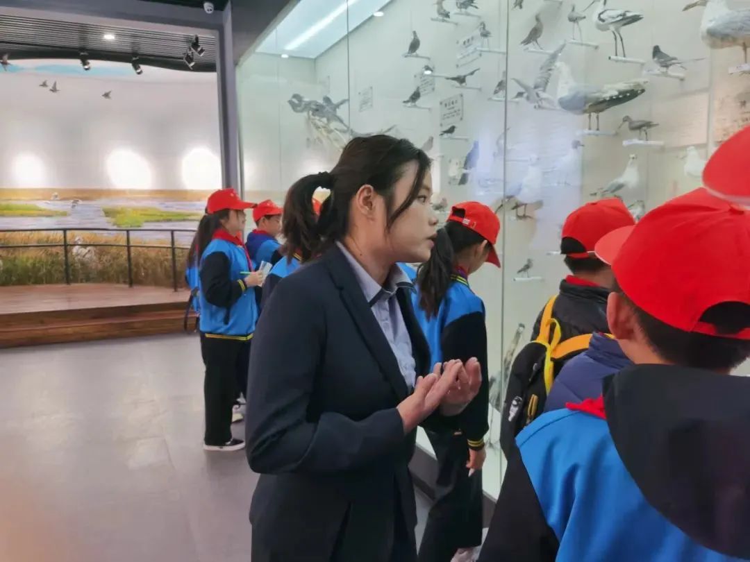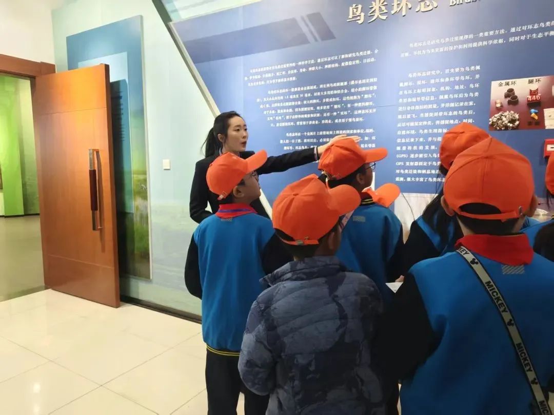 下午,沧州海关工作人员和黄河路小学师生来到伟德开展活动,生命科学学院教师陈新、李末和孙洋,带领明德礼仪社成员位子颜、杜林霖和青年志愿部志愿者接待了来访人员。讲解员组织小学生们到生物标本馆展厅,并依次引领他们参观了大鸨区、无脊椎动物区、两栖类、爬行类、哺乳类和鸟类、昆虫类等展区,讲解员运用专业的知识储备讲解,并耐心回答小学生们提出的问题。