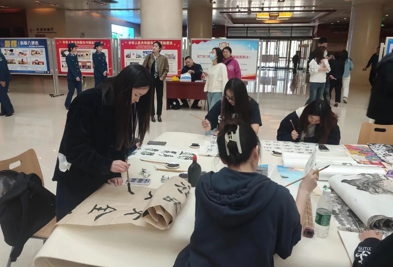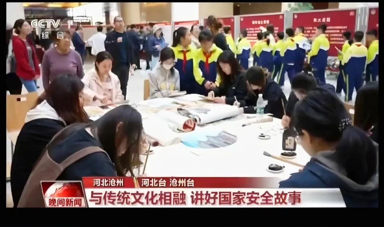 4月15日,文学院中兴书法社指导老师吕文亭带领社团学生赴沧州市博物馆参与国家安全主题教育活动,同学们发挥专业特长,现场书写“平安中国”“国泰民安”“筑牢防线 共守家园”“居安思危 警钟长鸣”和“以人民安全为宗旨 以政治安全为根本”等书法作品。