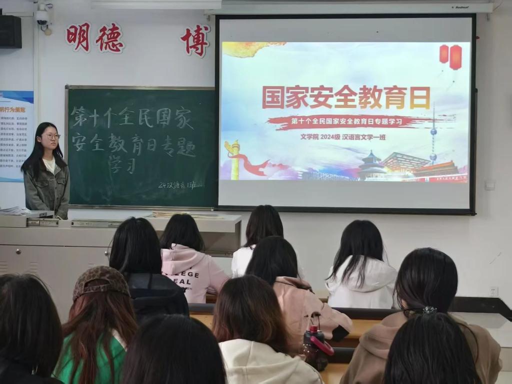 4月11日,文学院召开“第十个全民国家安全教育日”主题团课。团课上,各班团支书庄重宣读《国家安全知识普及倡议书》,普及国家安全的内涵与重要性,引导同学们增强防范意识,树立正确国家安全观。