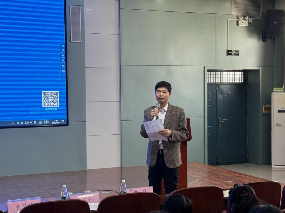 徐广林向运河区教体局、在场的一线教师表达了诚挚的尊敬与感谢,并就如何提升英语教育质量进行经验分享。