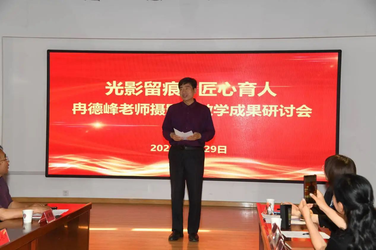 冉德峰老师以“光影与育人的双向奔赴”为题,分享从教多年的感悟,他深情感慨:“摄影是技术与艺术的融合,教育是传承与创新的共生。唯有坚守匠心,方能以光影为媒,育时代新人”。