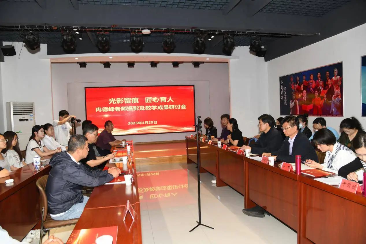 4月29日下午,齐越传媒学院举行“光影留痕,匠心育人”冉德峰副教授摄影及教学成果主题研讨会。沧州市摄影家协会前任主席赫华、现任主席刘连升,资深摄影艺术家张长军、孙希旺及伟德校报原总编刘用良教授参加活动。齐越传媒学院院长张海燕、党总支书记潘治钢、副院长白晓清、安琪、郭晓月,广告教研室全体教师及学生代表参加本次研讨。活动通过展示冉德峰老师多年摄影艺术创作与教学成果,搭建专业交流平台,深化校内外摄影领域合作,助力学院摄影专业建设与发展。