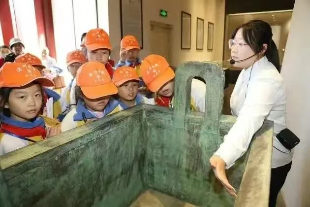 文博馆为充分发挥其社会教育功能,不断拓展服务对象,培养优秀师生讲解员、接待员,形成了一支纪律严明、办事高效,灵活思辨的志愿讲解团队。同时,文博馆推出创新参观体验活动,2024年10月建兴小记者走进文博馆参观体验,活动将课堂学习与实践活动生动结合,讲解员以生动有趣的方式进行讲解,巧妙地穿插互动问答,并组织开展甲骨闪卡猜字活动和钱币拓印活动,寓教于乐,增强中小学生对历史文化的认识。