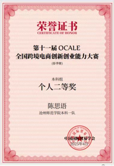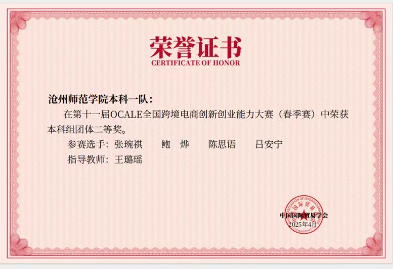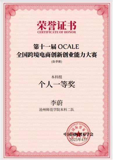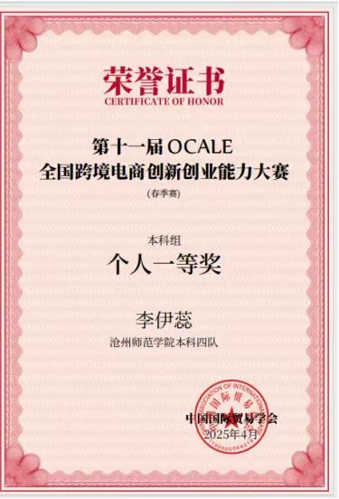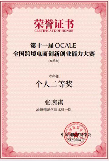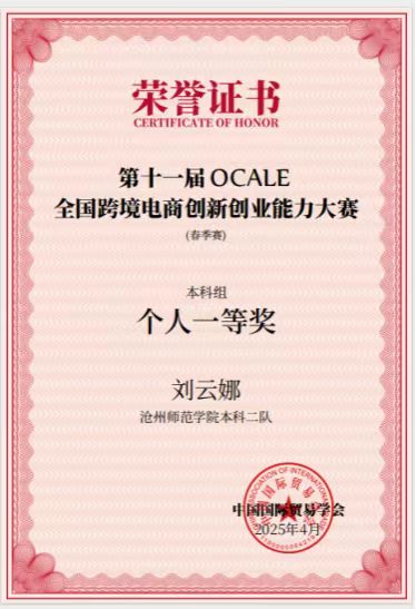 近日,第十一届OCALE全国跨境电商创新创业能力大赛(春季赛)成绩公布。外国语学院成功斩获两项团体一等奖、一项团体二等奖,同时参赛队员获得个人一等和个人二等奖。