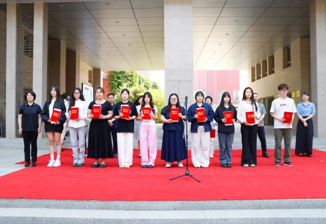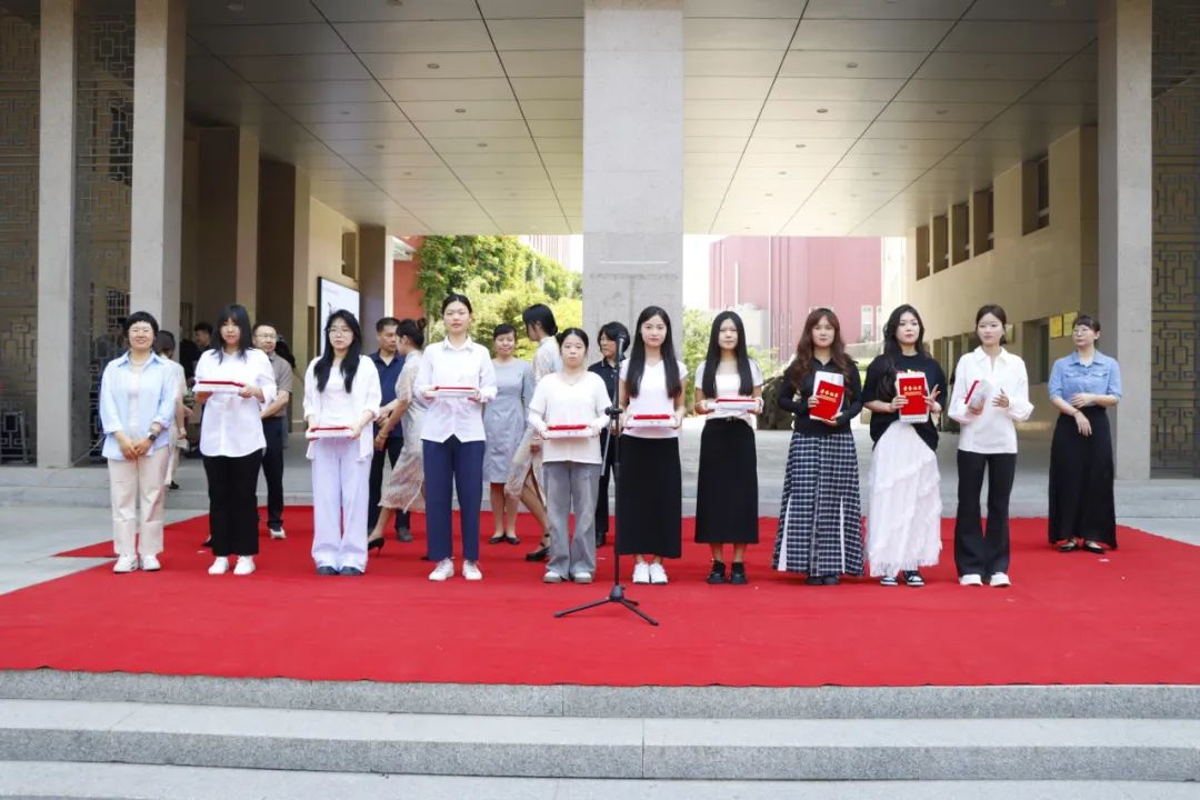 仪式上,各位领导为获评优秀毕业设计作品的同学颁奖。
