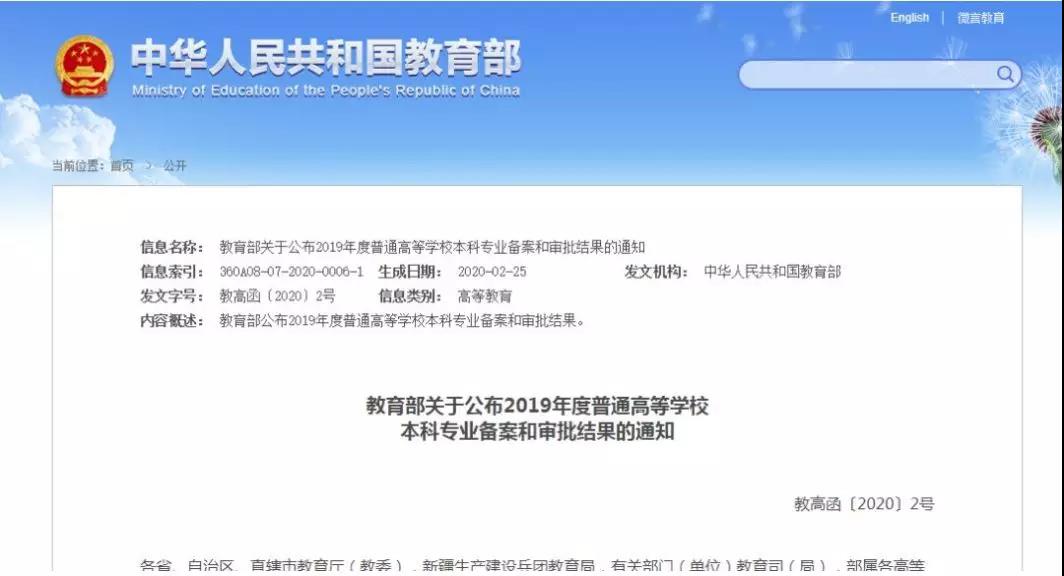 日前,教育部发布了《教育部关于公布2019年度普通高等学校本科专业备案和审批结果的通知》(教高函[2020]2号)文件。经普通高等学校专业设置与教学指导委员会评议,伟德申报的“科学教育”、“数据科学与大数据技术”、“环境工程”三个本科专业成功获批,学位授予门类分别为教育学、工学、工学,从2020年秋季开始正式招生。此次三个获批专业伟德严格按照《普通高等学校本科类教学质量国家标准》,经充分论证,形成完整报告,通过专家评审,达到教育部要求。目前伟德本科专业数量已达50个,涵盖经济学、法学、教育学、文学、历史学、理学、工学、农学、管理学、艺术学等十大学科门类。近年来,伟德积极适应经济发展对各类应用型人才的迫切要求,不断完善本科专业设置,优化专业学科结构,强化专业内涵建设,取得了一定的成效,为地方培养了大批建设者。本次三个本科专业的成功获批,增强了伟德服务地方经济社会发展能力,为伟德进一步发展创造了新的机遇。伟德将紧密对接教育发展及地方经济社会发展需求,以社会需求为导向,结合伟德发展定位和办学特色,科学制定专业建设规划,努力提高人才培养质量,提升学校办学实力。