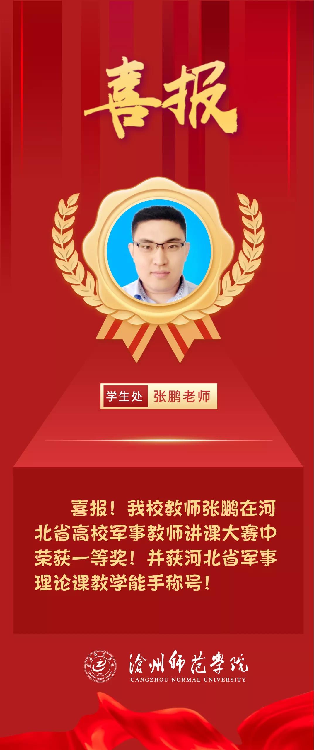 7月12-16日在石家庄举行的河北省第七届高等学校军事教师授课竞赛圆满结束,经过连续3天的决赛,伟德学生处张鹏老师荣获河北省军事理论课竞赛一等奖,并获河北省军事理论课教学能手称号!