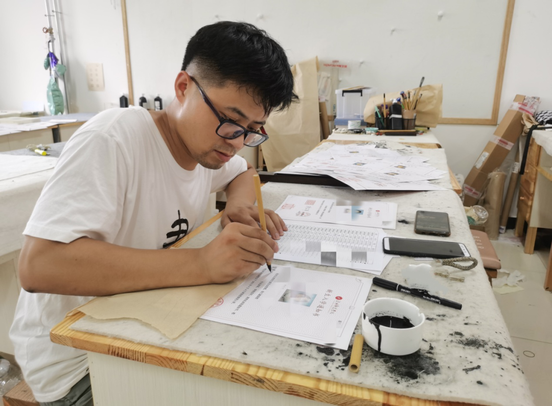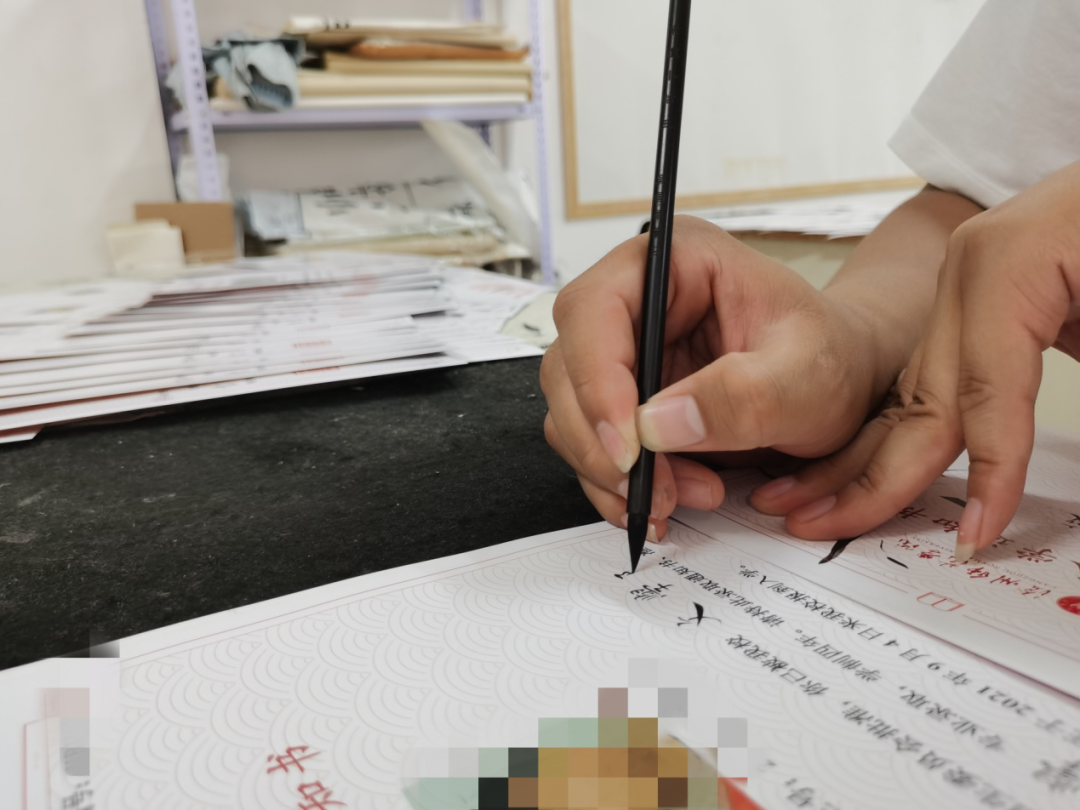 手落纸墨,笔写传情。2021级新生还未进校门,师院就开启了“花式宠爱”模式,为表达对新生的欢迎和祝福,今年伟德的录取通知书特邀文学院书法学专业陈国成、张献成等教师手写。他们以书法作品的标准,把墨香转化为祝福,为未曾谋面的大一新生送去独特的见面礼。“一笔一画将新生名字写在录取通知书上时,意味着这名学生的名字已印在了师院的心中。”书法学专业教师陈国成认为,这是一种与新生隔空对话的仪式感,“替每一个孩子高兴,也希望他们在大学校园里茁壮成长。”
